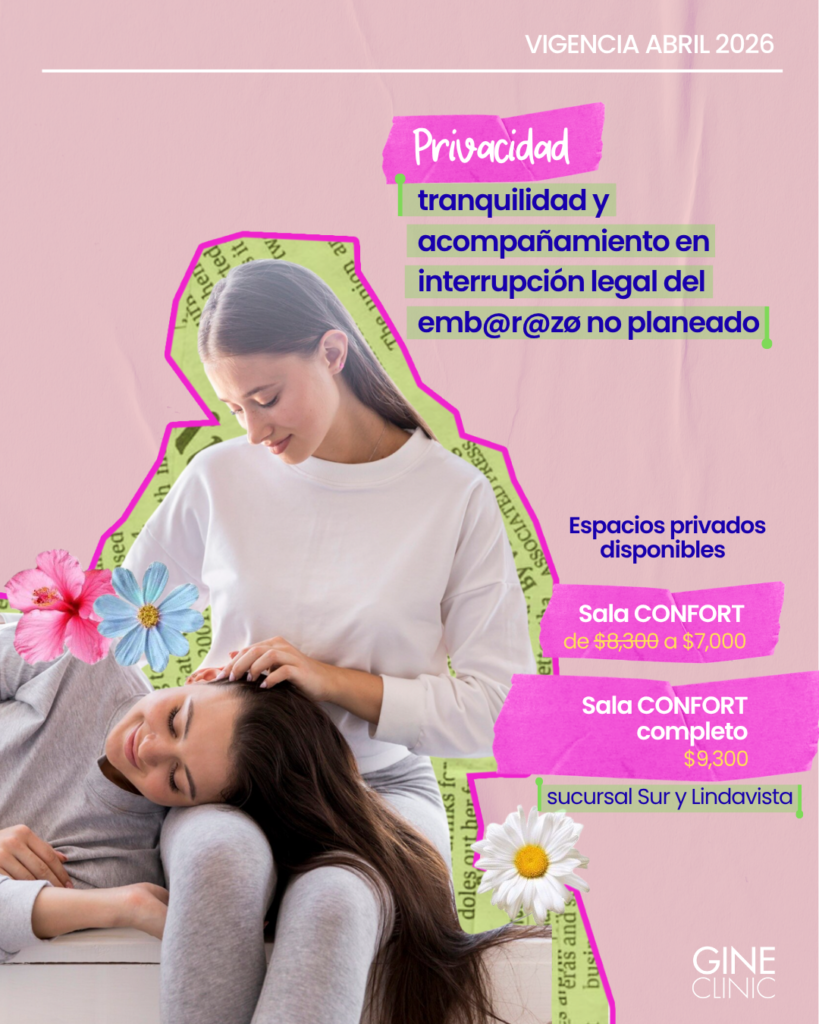 • En Gineclinic preparamos promociones y ofertas cada mes para que cuides de tu salud sexual y decidas cuándo y cómo vivir un embarazo. Elige tu promoción y comunícate con nosotras para hacer tu cita.